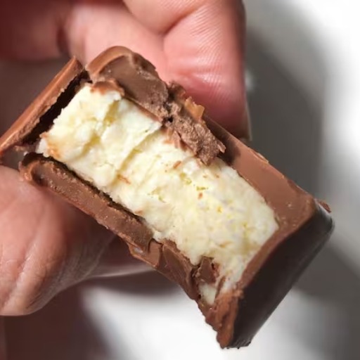Zero açúcar e com whey protein. Bombom de chocolate belga recheado com coco cremoso.