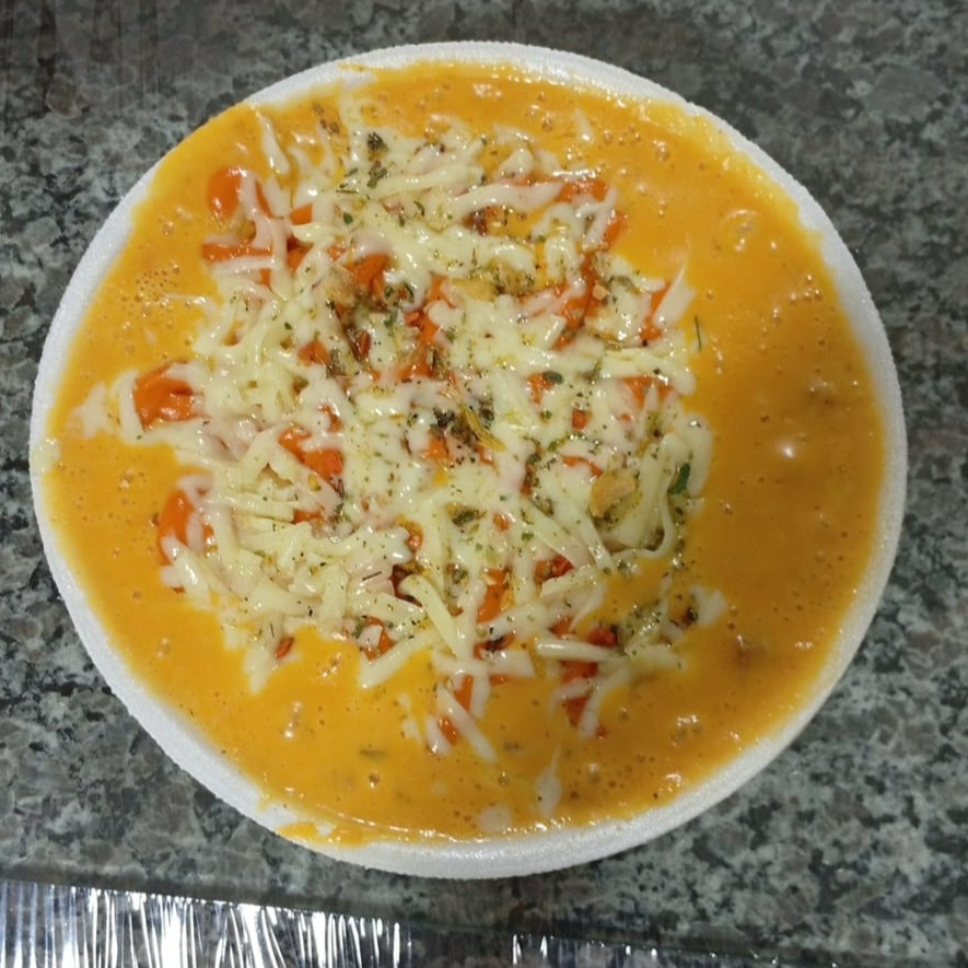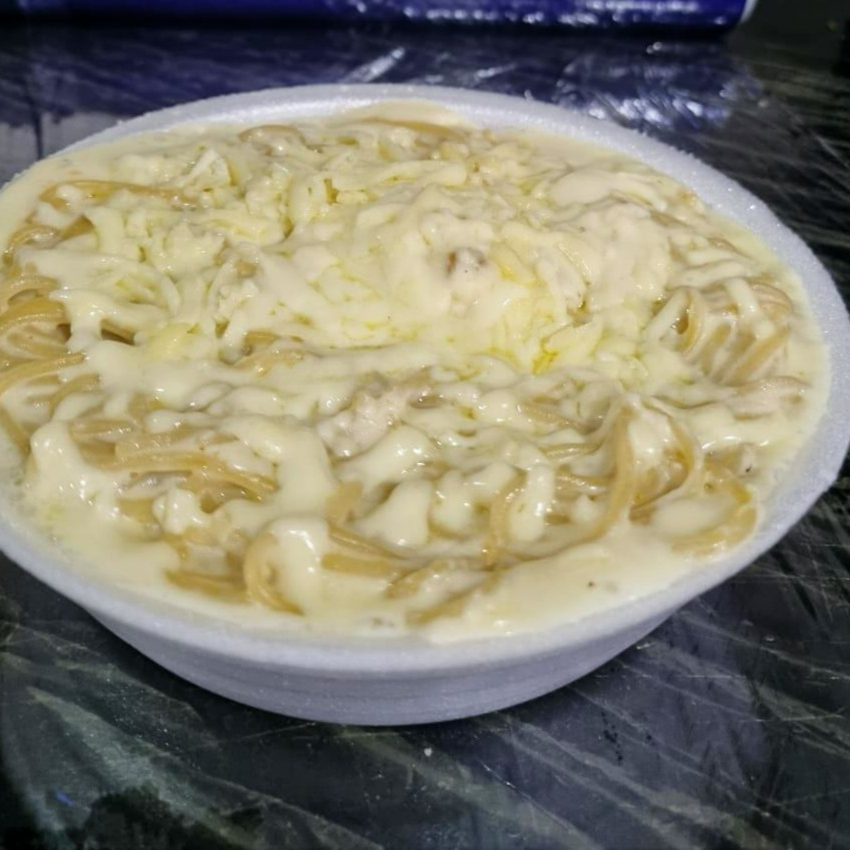 Macarrão, molho cheddar, massarela, parmesão, bacon e calabresa