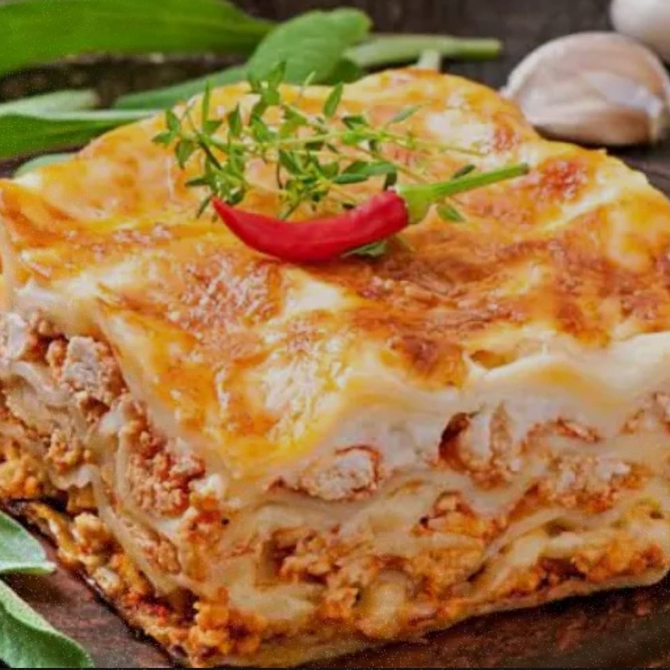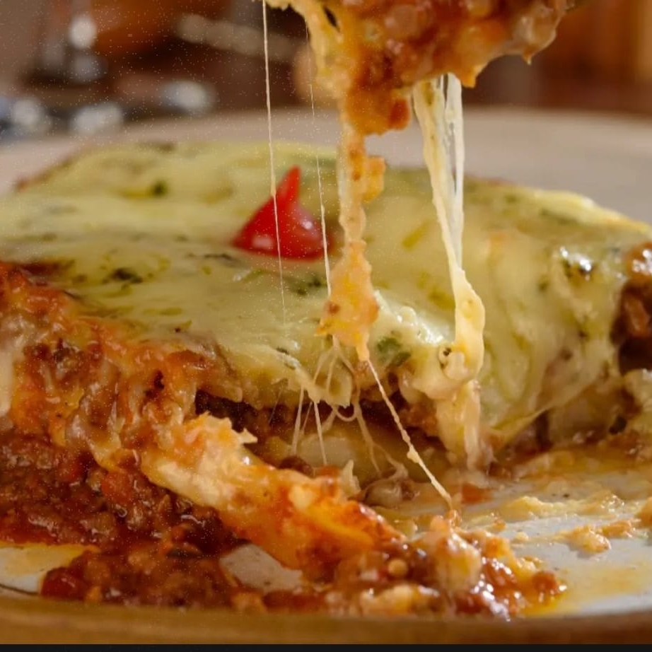 Nossa lasanha acompanha : Massa fresquinha ,carne moída, bacon, azeitona, mussarela e molho especial da casa
