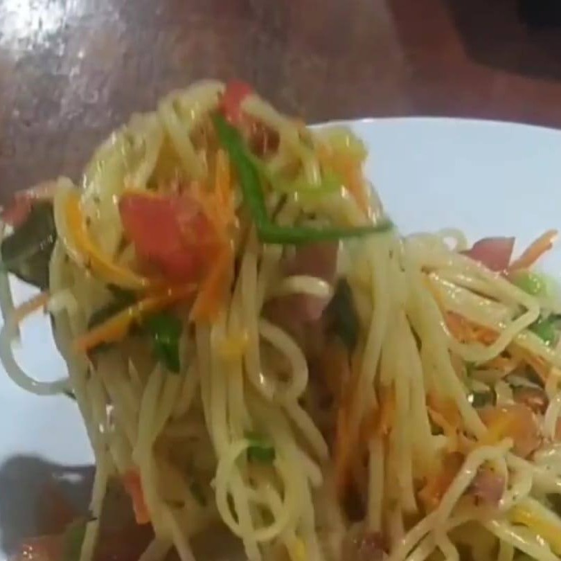 Massa espaquete,com frango ,presunto,bacom,milho,calabresa,cenoura e temperos