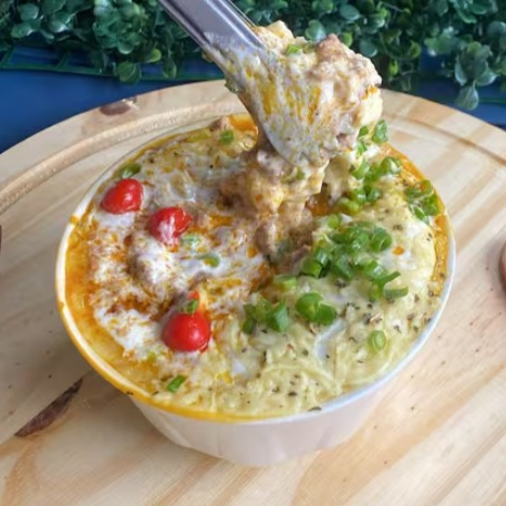 Acompanhadas de um suculento molho à bolonhesa, feito com a melhor carne moída. Para aprimorar ainda mais o sabor, adicionamos um toque de requeijão cremoso mesclado com o inigualável Catupiry. Não poderíamos esquecer da cebolinha fresca, que acrescentam textura e um sabor inconfundível ao prato.