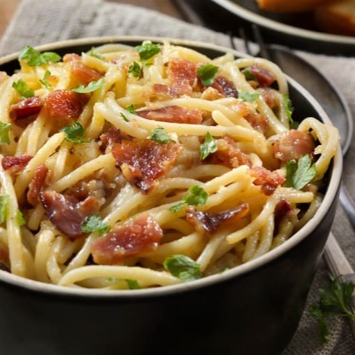 Nosso 'Spaghetti ao Alho Frito e Bacon' é uma verdadeira delícia da culinária italiana. Servindo perfeitamente uma pessoa, este prato reúne a simplicidade e o sabor autêntico dos ingredientes de alta qualidade. A massa de spaghetti é cozida al dente, salteada com alho crocante e dourado, adicionada saborosos cubos de bacon . Um prato,cheio de sabor, que figura entre os mais vendidos.