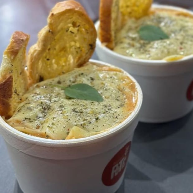 Massa perfeitamente cozido, Frango em Cubos ,acompanhado de um suculente de Mix 3 queijos ,Requeijão Cremoso , Provolone , envolvido em temperos especiais e finalizado com queijo mussarela derretida. Aprox. 600g