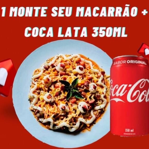 1 Monte Seu Macarrão (massa + 4 Acompanhamentos) + Coca Lata 350ml