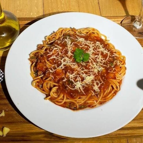 Massa espaguete al dente, acompanhada de um molho rico e cremoso, preparado com carne selecionada e temperos fresquinhos, cozidos lentamente para que cada garfada seja uma explosão de sabor. É aquele prato que satisfaz a qualquer hora do Dia. Serve até 1 pessoa (aprox 400g) Uma combinação clássica e deliciosa para os amantes da massa.