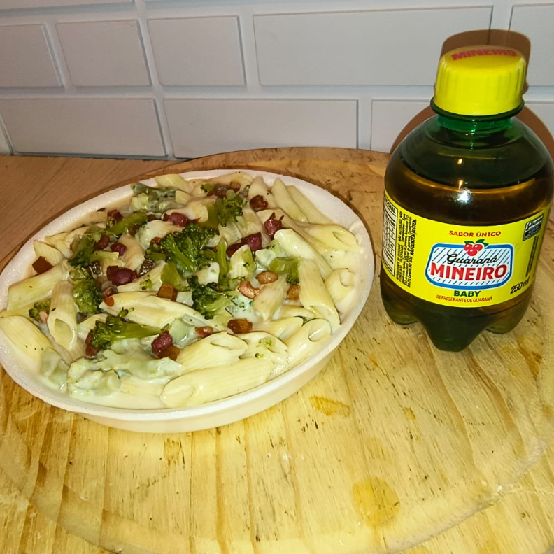 Penne Com Brócolis E Bacon Ao Molho Branco + Mineiro 250ml