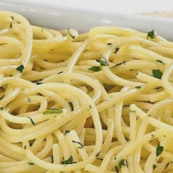 Macarrão com alho, óleo e bacon. Um prato simples e saboroso que destaca o sabor do alho e a crocância do bacon.