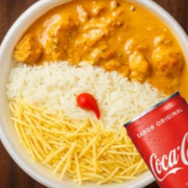 Delicioso strogonoff de frango cremoso, preparado com pedaços suculentos de frango, molho encorpado e tempero na medida certa. Acompanha arroz soltinho e batata palha crocante para completar a experiência. Acompanhado com um refrigerante de sua escolha