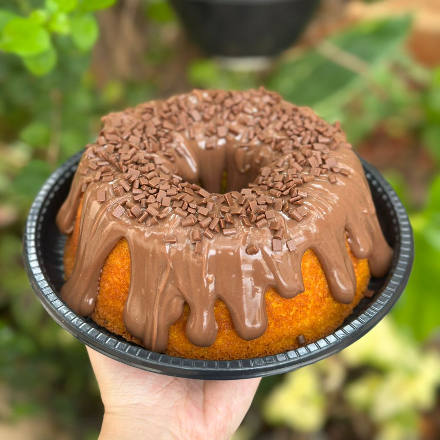 Bolo de cenoura extrremamente fofo e naturalmente úmido com cobertura de brigadeiro super cremoso. Perfeito para um lanche da tarde ou para seu café da manhã. Serve ate 4 pessoas. Peso médio de 780g.