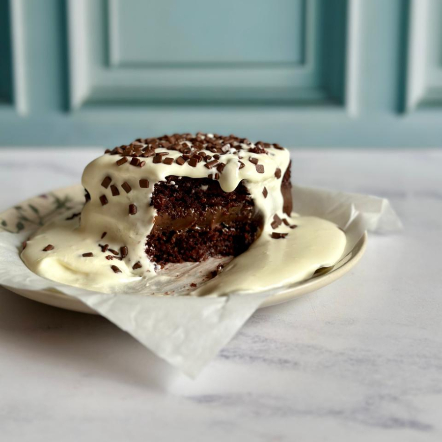 Bolo de chocolate extremamente úmido, recheado com brigadeiro ultra cremoso, coberto com um creme aveludado de Leite Ninho. Super equilibrado e viciante! Serve bem 1 pessoa. Peso médio de 300g.