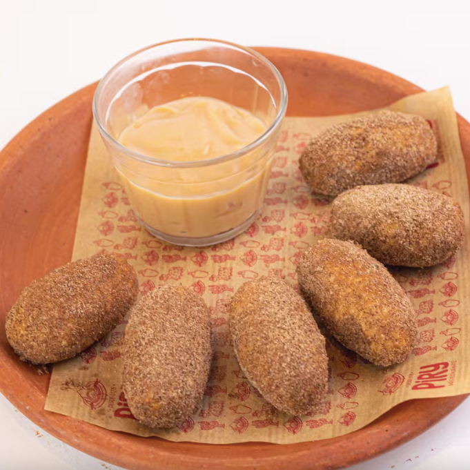 Um clássico do nordeste. Bolinho de massa de tapioca com leite de coco, frito e empanado com açúcar e canela. Acompanhado de doce de leite. Uma receita que atravessa gerações!