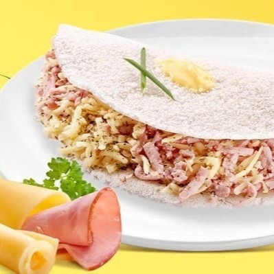 Aprecie a tapioca de presunto e queijo, uma combinação clássica que nunca sai de moda. Ideal para um lanche rápido e saboroso.