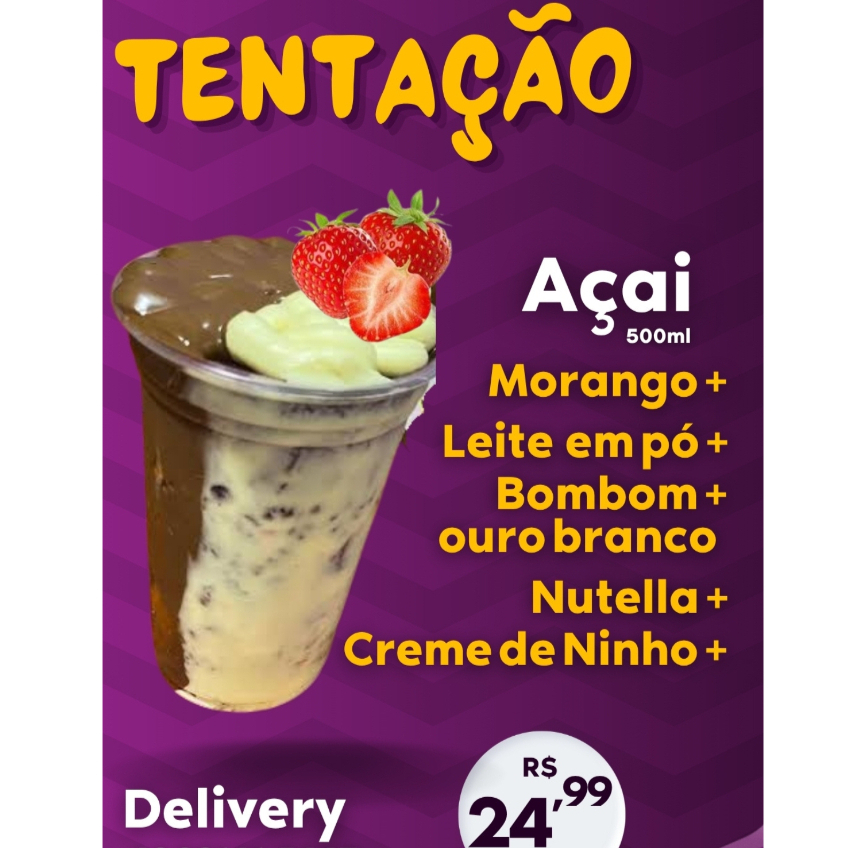Açaí, morango, leite em pó, bombom ouro branco, nutella, creme de ninho