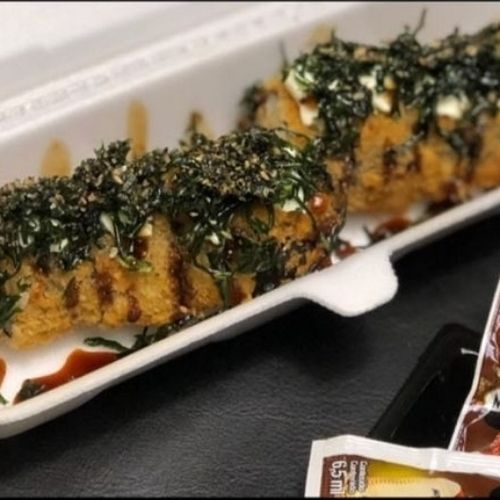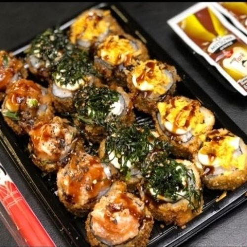Gunkan de salmão empanado e frito