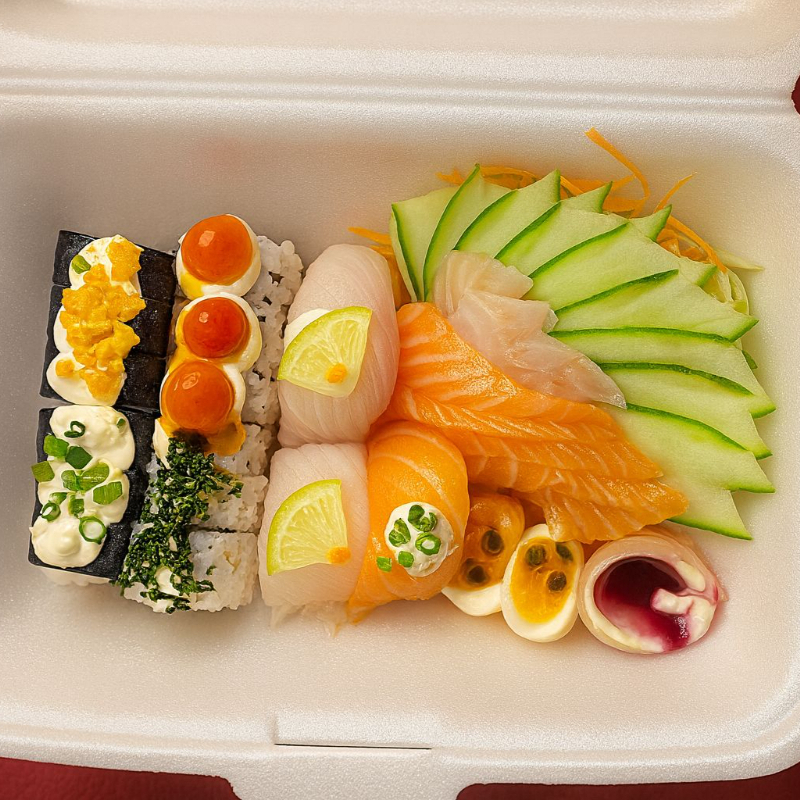 20 unidades de sushi e 20 unidades de hot