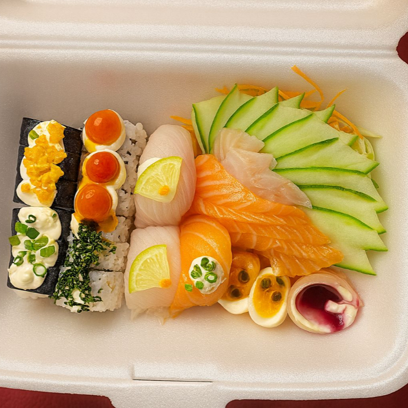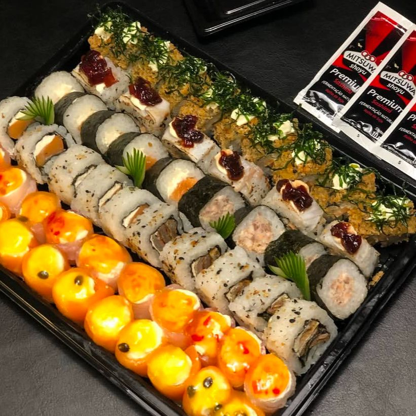 20 unidades de sushi e 20 unidades de hot