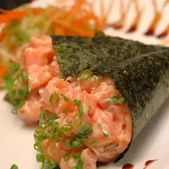 Temaki preparado com Salmão e cream chease e cebolinha (não vai arroz)