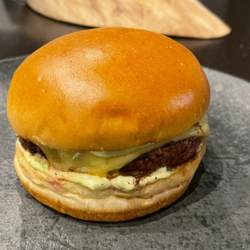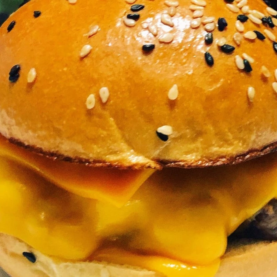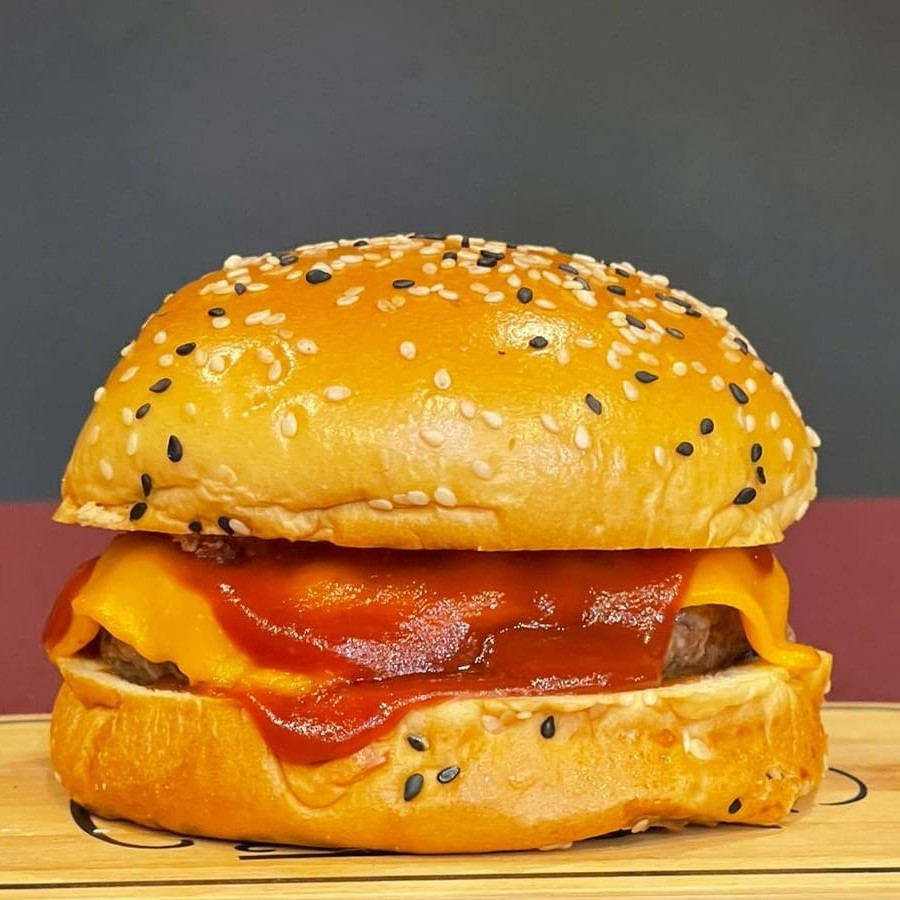 Um delicioso pão brioche super macio hambúrguer de 90 gramas 1 fatia de mussarela e nosso molho do chefe.