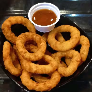 12 unidades Cebola empanadas com um delicioso molho da casa .