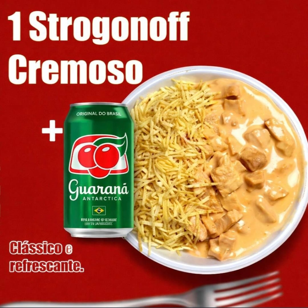 1 Marmitex 500ml Strogonoff + Guarana Lata 40% Off