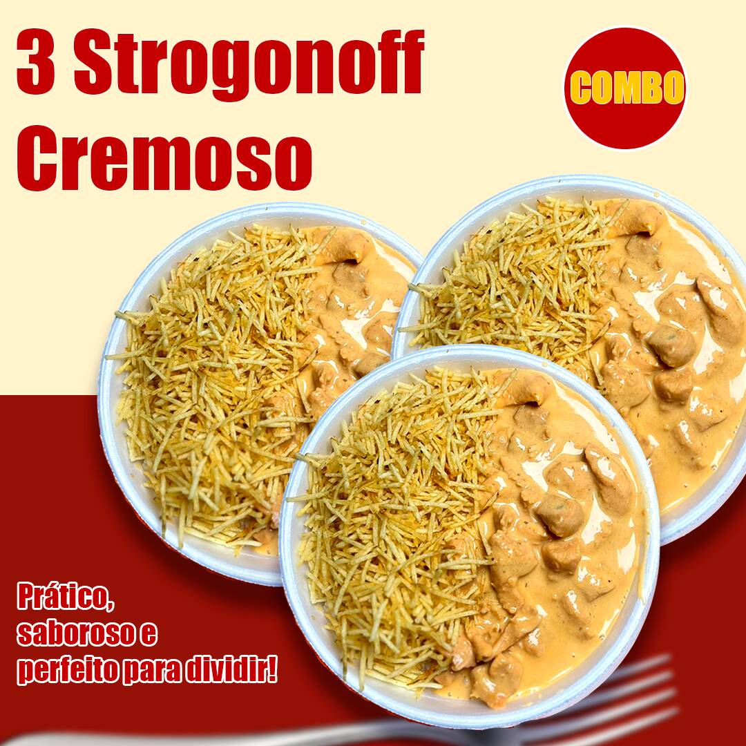 3 Marmitex 500ml- Strogonoff Cremoso - Oferta 50% Off
