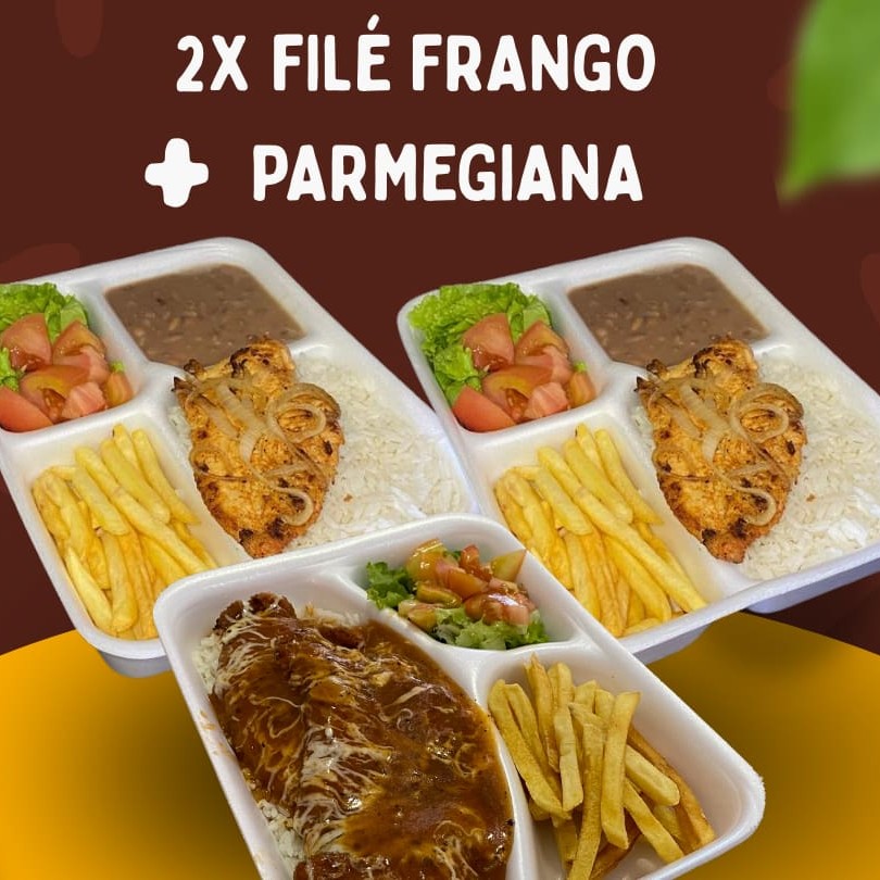 Combo de três refeições! Duas marmitas de filé de frango grelhada + uma Parmegiana de frango.