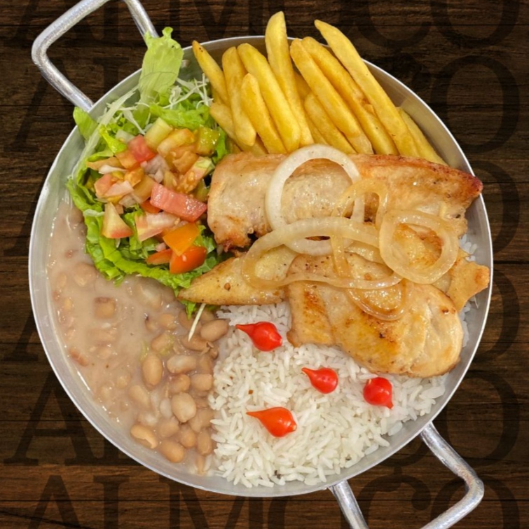 Filé De Frango Grelhado + Arroz Branco, Feijão, Batata Frita E Salada.