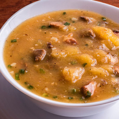 caldo de vaca atolada 350 ml com acompanhamento de cheiro verde e torresmo