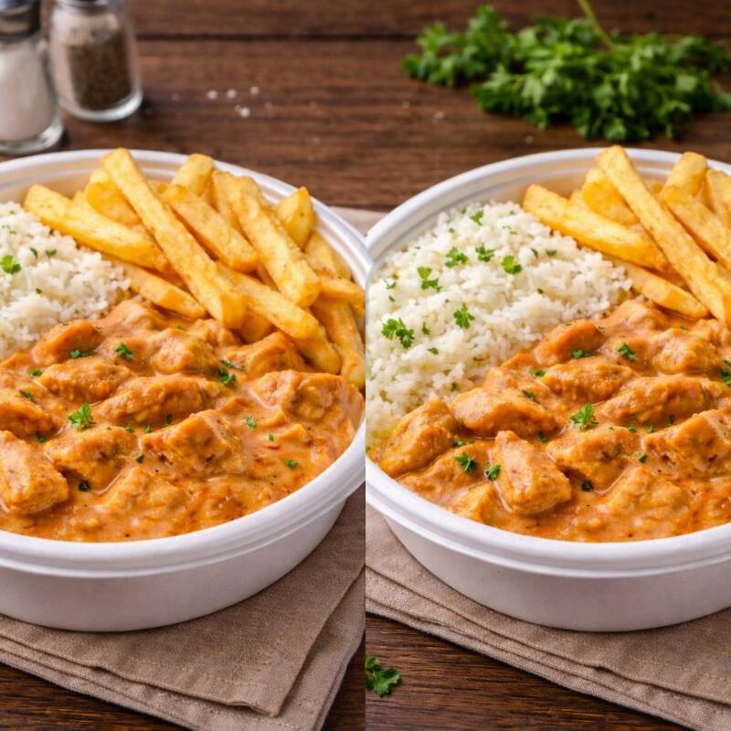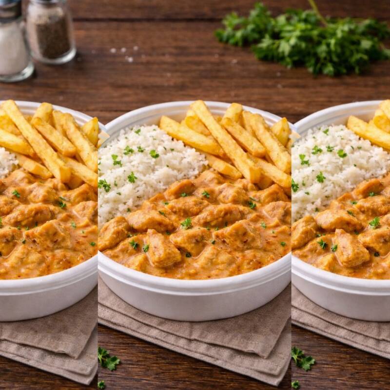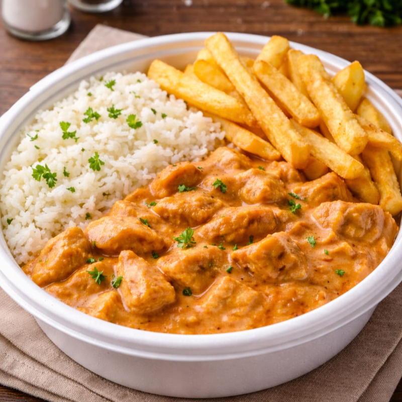 Arroz soltinho, batata frita crocante e aquele strogonoff cremoso !!