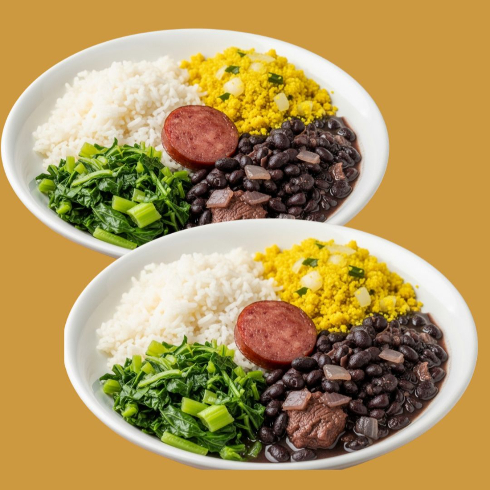 Feijoada caseira com arroz branco soltinho, farofa douradinha e couve refogada. Sabor de tradição, feita com carinho para aquecer seu dia.