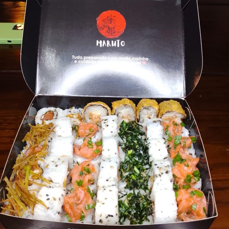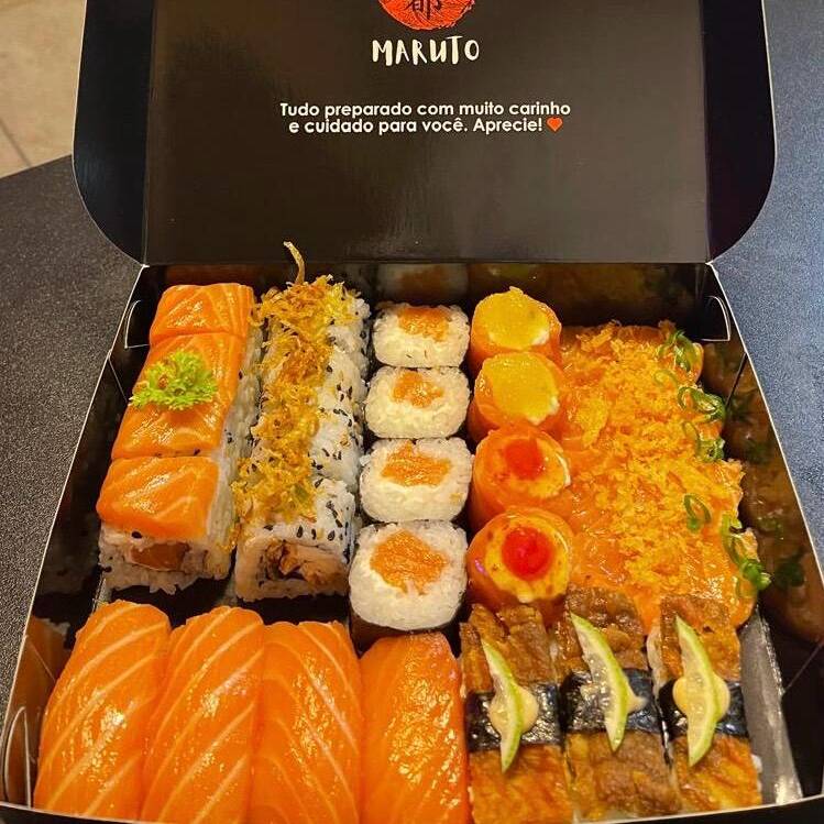 Combinado Maruto - 40 peças 8 Uramaki / 5 Gukan / 8 Hossomaki / 3 niguiri / 6 Sashimi (salmão e tilapia) , 10 Hot philadelfia