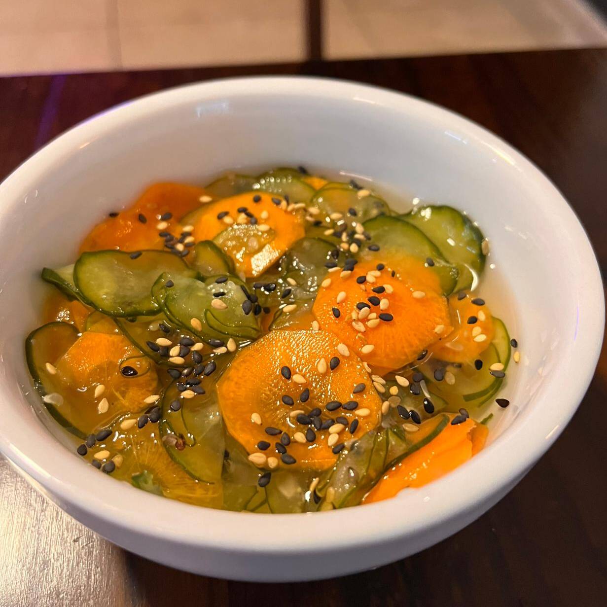 Pepino Japonês, cenoura, gergelim marinados em molho agridoce. 180g