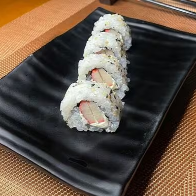 Enrolado de alga com arroz, kani com cream cheese e gergelim. (10 peças)