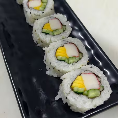 Enrolado de alga com arroz, manga, pepino e kani. (10 peças)