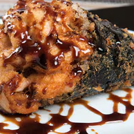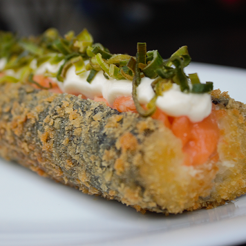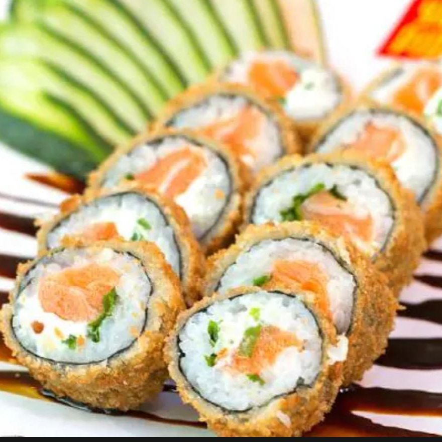 Temaki de Salmão com cream cheese empanado e frito. Ótimo para comer com nosso maravilhoso molho teriaki.