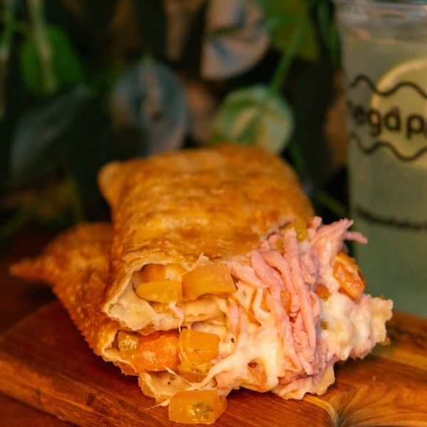 Delicioso pastel de frango desfiado com requeijão premium na versão 20cm