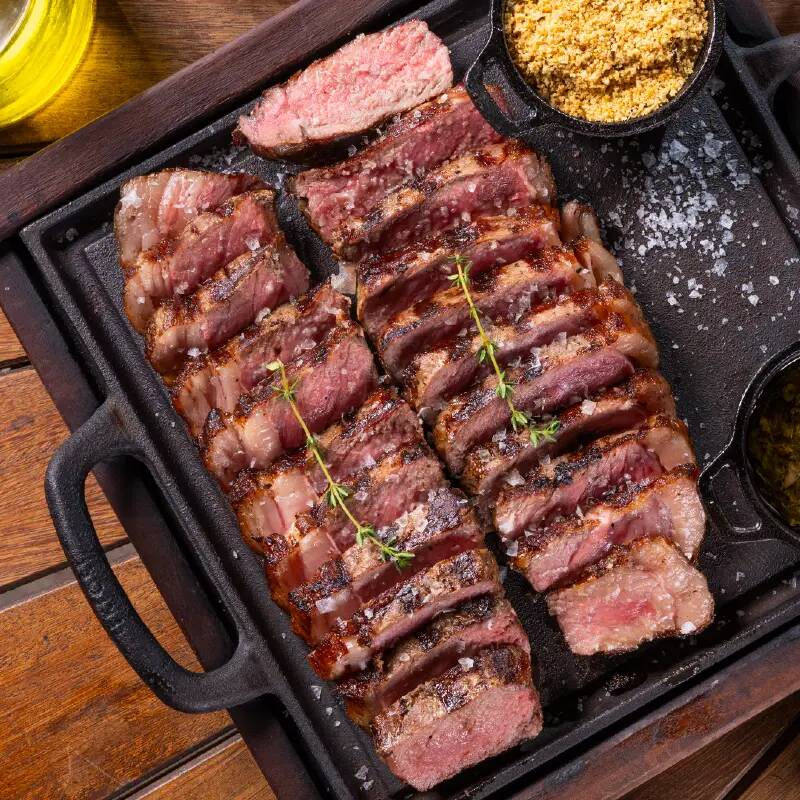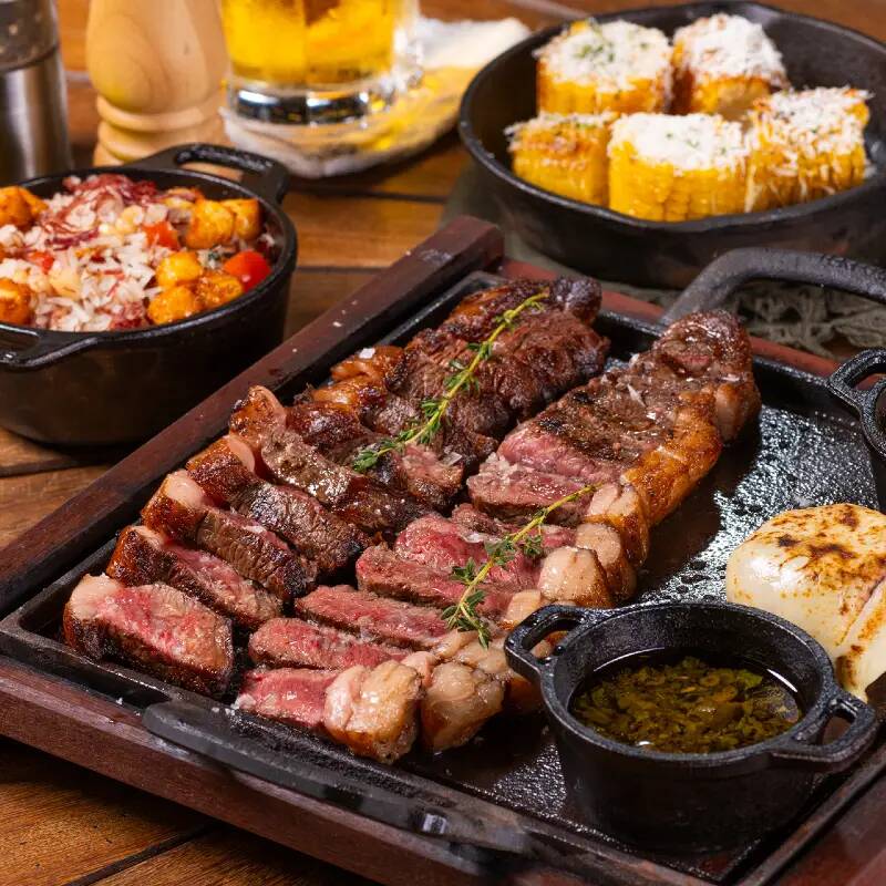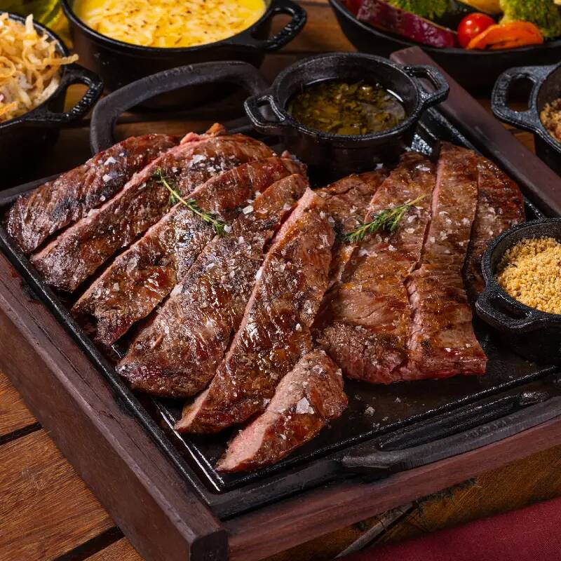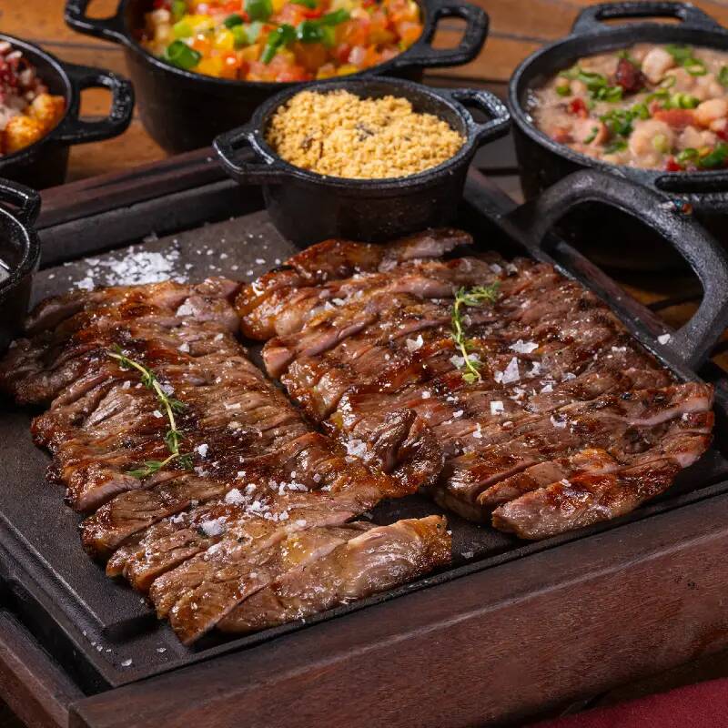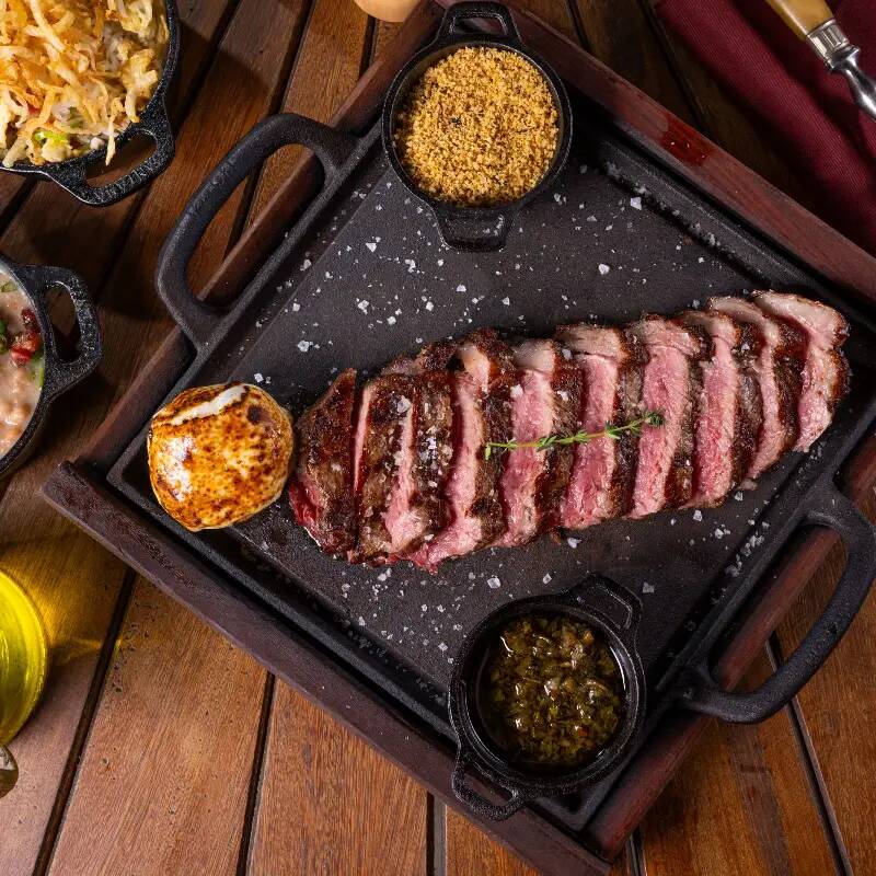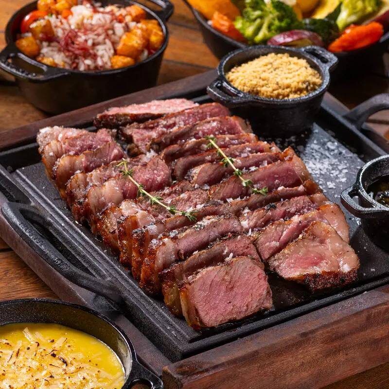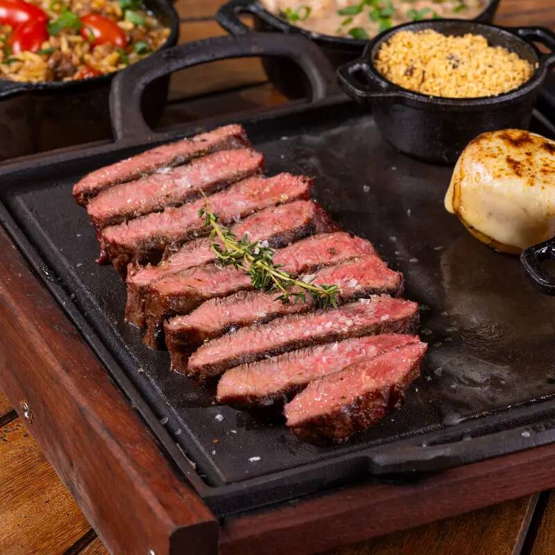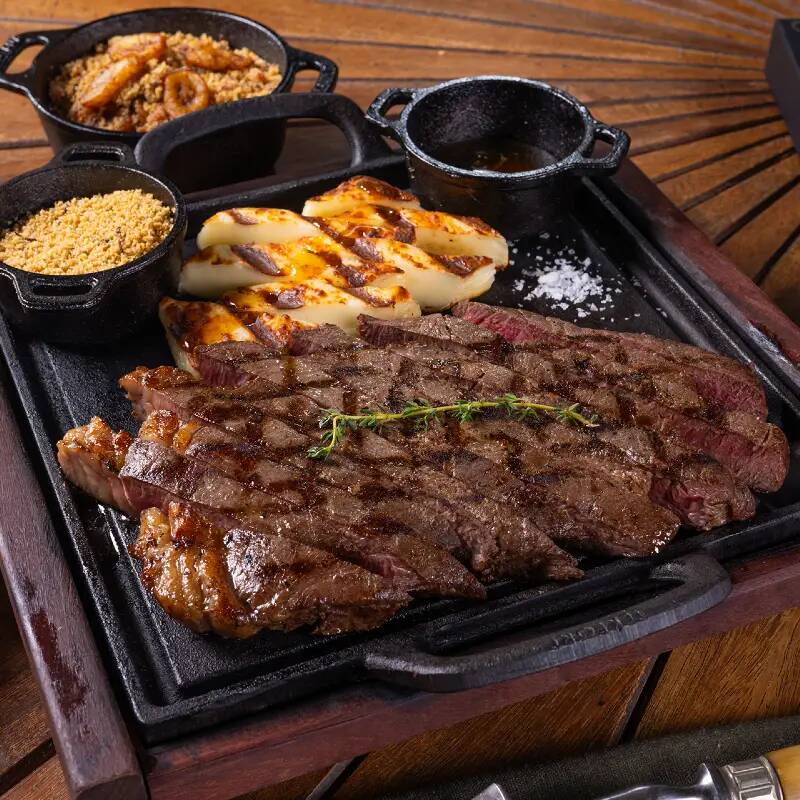 Um dos mais pedidos da casa. Corte saboroso, marmorizado e suculento, muito utilizado na Argentina servido com chimichurri fresco e farofa da casa.
