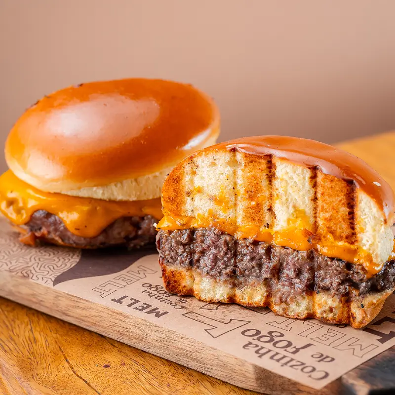 180gr blend bovino, pão brioche e queijo cheddar derretido, cortado ao meio e tostado na brasa!