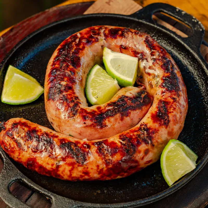 500g de linguiça suína recheada com queijo coalho. Servida com farofa da casa e chimichurri fresco.
