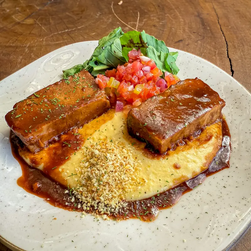 Carne serenada finalizada na parrilla e servida com queijo coalho, melaço de cana e farofa da casa. *A gramatura do produto se refere ao peso IN Natura.