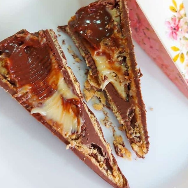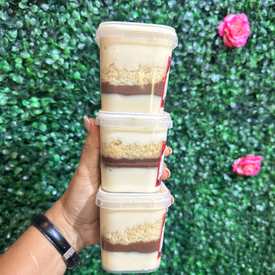 Recheio de brigadeiro de Ninho, creme de nutela intercalados com brownie. Em média 290gr