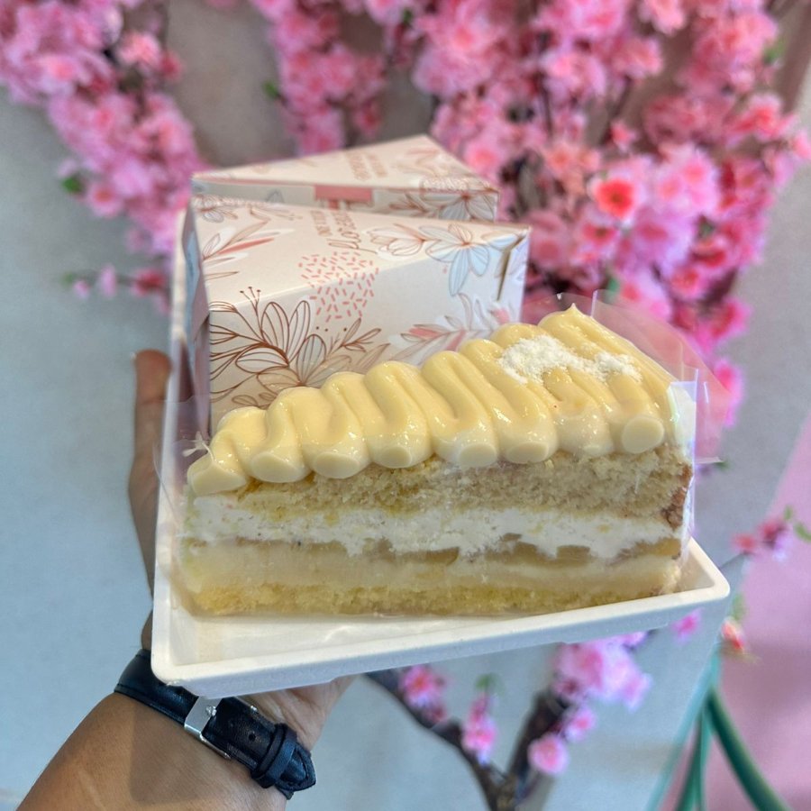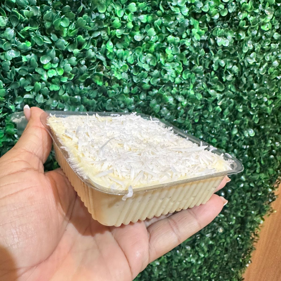 Bolo branco, recheio de Ninho com doce de leite caseiro, bem molhado ( peso médio 90g )