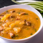 Mandioca Cremosa com Carne Cozida no Temperinho da Casa, Servido com Torresmo Crocante e Torradinha Grátis. Um Caldo Reforçado Que Sacia e Revigora!