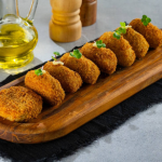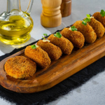 8 Unidades de Croquetas de Cupim Desfiado com Queijo Derretido, Cebola, Pimentas e Cheiro Verde. Uma Combinação Explosiva, Suculenta e Cheia de Sabor!