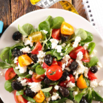 Alface Americana, Tomate Cereja, Manga Fresca, Queijo em Cubos, Palmito e Croutons Crocantes. Refrescante, Colorida e Servida com Molho à Parte!