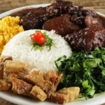 Feijoada Tradicional com Arroz Branco, Costelinha de Porco, Couve Refogada, Torresminho Crocante e Laranja Fatiada. Sabor Brasileiro na Medida Certa!