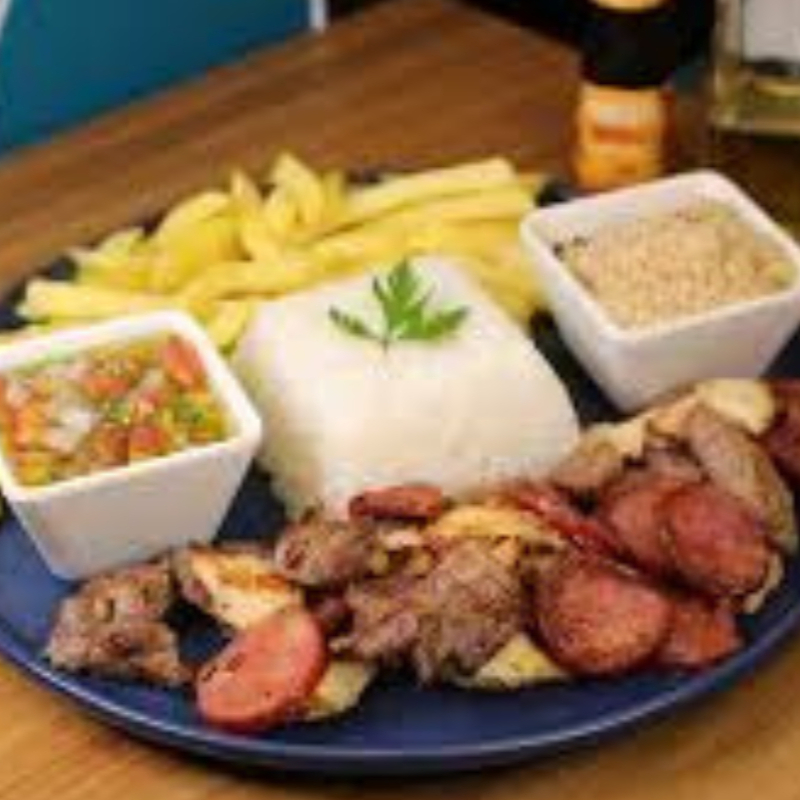 Churrasco Suculento, Arroz Branco Soltinho, Feijão de Caldo Encorpado e Saladinha Fresca. Sabor Completo em Cada Garfada Que Mata a Fome!