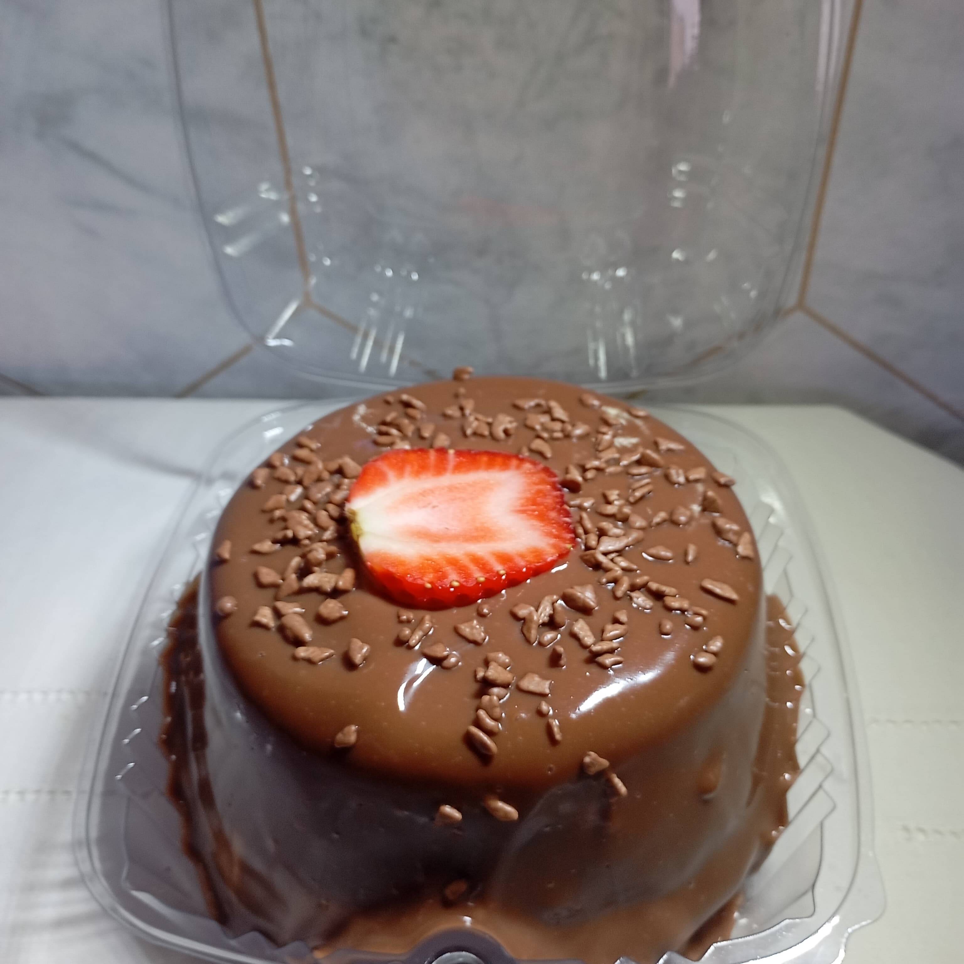 Bolo Mini Vulcão feito de massa de chocolate bem fofinha com cobertura de chocolate e leite ninho.