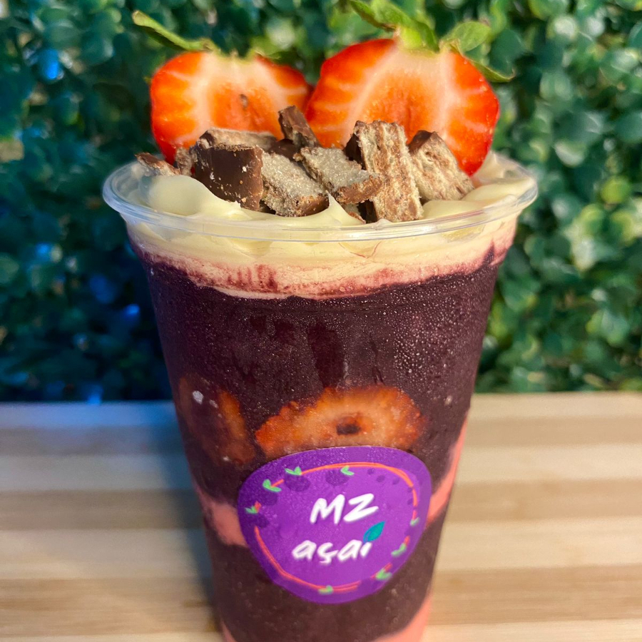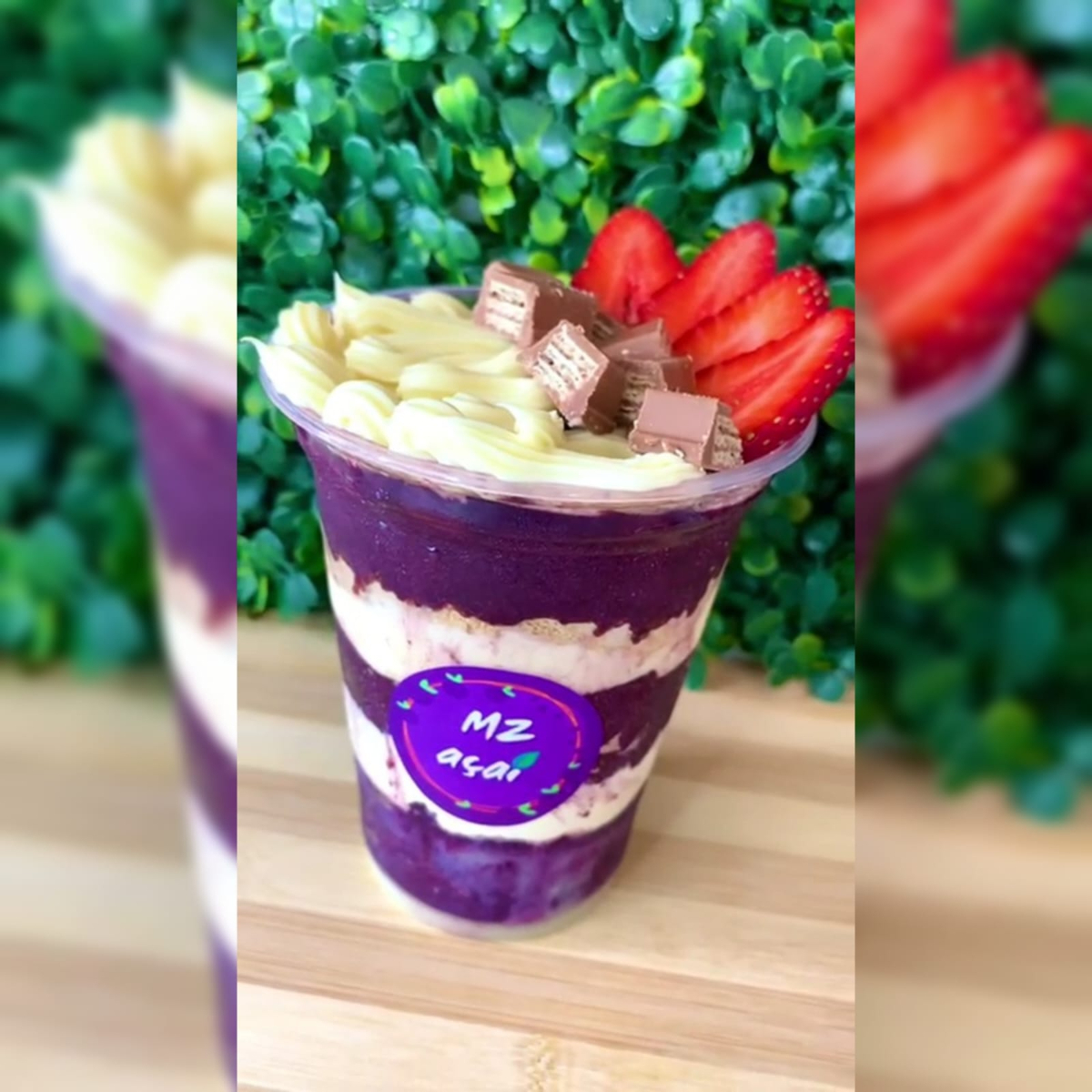 Açaí geladinho na garrafinha, combinado com um irresistível creme de maracujá... doce, leve e simplesmente viciante!