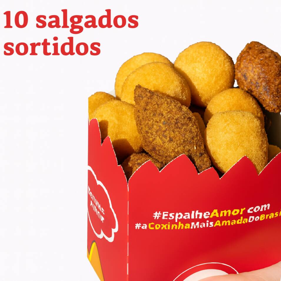😍 Perfeito pra matar a fome rapidinho! 12 salgados crocantes + Coca geladinha por um preço que cabe no bolso! ⚠️ Aproveite, oferta por tempo limitado!